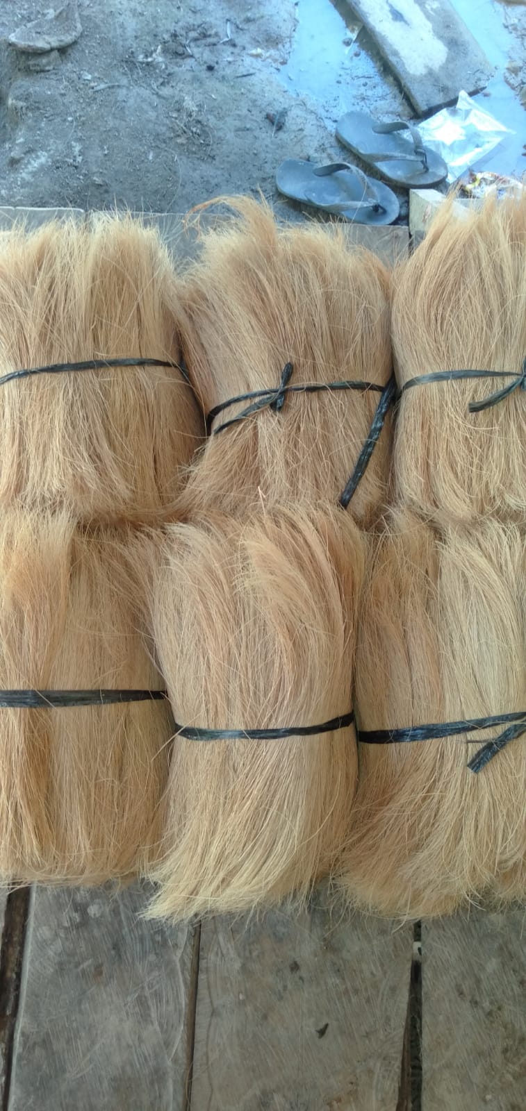 Coco bristle is the longest variety of coir fibre. It is manufactured from retted coconut husks through a process called defibering. The coir fibre thus extracted is then combed using steel combs to make the fibre clean and to remove short fibres. The immature husks are kept in a water-filled pit for six months. During this time, micro organisms break down the plant tissues surrounding the fibres and loosen them - a process known as retting. Then long fibres are separated by milling process and subsequently dried and cleaned. Bristle coir fibre is used as bristles in brushes for domestic and industrial applications. The Bristle fiber is long and strong fibres which is most commonly use in brush and broom manufacturing industries. Bristle fibres are commonly termed bristle fibre or brush fibre. Long and strong fibers commonly used in brush and broom manufacturing industries. The stiff, straight and long strands of fiber are termed bristle fiber or brush fiber. The basic grade of bristle fiber is known as 1Tie fiber. This is then further hackled and classified into 2 Tie and 3 Tie based on the length of strands and the general condition of fibers like Moisture and Impurity.